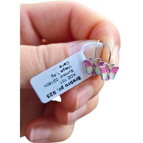 Kolczyki dla dzieci Motylki wykonane z najwyższej jakości srebra próby 925,rodowane*.
