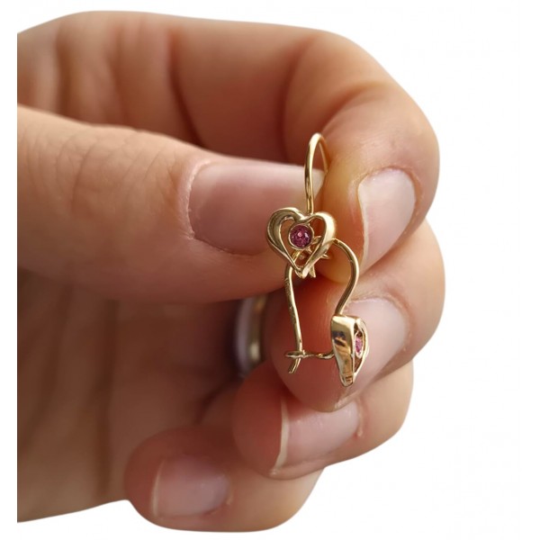 ZŁOTE WISZĄCE KOLCZYKI DLA DZIEWCZYNKI SERDUSZKA SREBRO 925