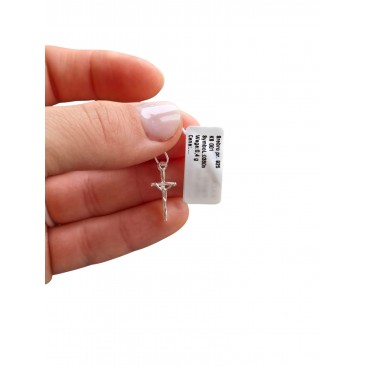 Na krzyżyku wizerunek ukrzyżowanego Chrystusa . Krzyżyk wykonany został z najwyższej jakości srebra próby 925 .